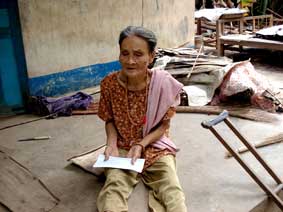 Bà Muôn vui mừng nhận số tiền bạn đọc gởi tặng.