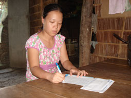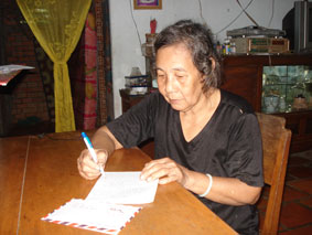 Bà Viễn ký nhận tiền bạn đọc gởi tặng. |