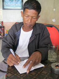 Anh Lê Văn Phụng kí tên nhận tiền của nhà hảo tâm gởi tặng