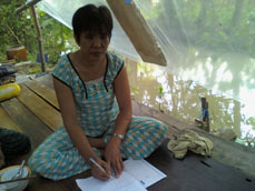 Chị Lê Thị Cầm nhận tiền bạn đọc gởi tặng.