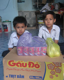 (CT)-Vừa qua, ông Huỳnh Ngọc An (ở quận Ninh Kiều) đến bệnh viện Đa khoa TP Cần Thơ thăm hỏi sức khoẻ và trao 1 triệu đồng cho chị Nguyễn Thị Mỹ Linh (xem bài: “Mong sống để nuôi con”, trên Báo Cần Thơ điện tử ngày 30-11-2011). Dịp này ông An đến nhà trọ của gia đình chị Linh hỗ trợ thùng mì gói và nhu yếu phẩm cho các con chị Linh.