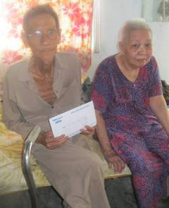 ông Nguyễn Văn Năm và bà Huỳnh Thị Ngọt cảm ơn nhà hảo tâm đã giúp |
