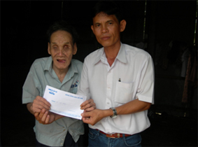 Đại diện Báo Cần Thơ cùng ông Lê Bá Tòan, Trưởng ấp Mỹ Nhơn, xã Mỹ Khánh, huyện Phong Điền, TP Cần Thơ, đến trao 500.000 đồng của bạn đọc Báo Cần Thơ cho ông Võ Văn Răng, ngụ 463, tổ 33, ấp Mỹ Nhơn (xem bài: “Ông lão mù lòa đang cần được giúp đỡ!” trên Báo Cần Thơ điện tử ngày 5-10-2009). Số tiền trên của bà Phạm Thị Kim Chi, ngụ phường Tân Quy, quận Tân Phú, TP Hồ Chí Minh gởi tặng.