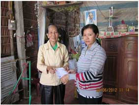 (CT) – Ngày 25-6-2012, phóng viên Báo Cần Thơ đã trao 200.000 đồng của bạn đọc Duy Bảo, ở đường Ngô Quyền, quận Ninh Kiều, gởi tặng bà Hồ Kim Anh, ở khu vực Thạnh Hòa, phường Thường Thạnh, quận Cái Răng (xem bài: “Để bà Hai Anh có tuổi già an vui!” trên Báo Cần Thơ ngày 17-6-2012).