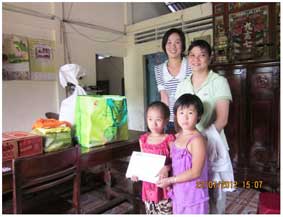 Chị Tuyết Lan và người bạn củng nhóm trao quà cho Ngọc Đẹp và Bích Trâm.