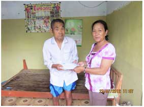Đại diện Hội Chữ thập đỏ phường An Khánh trao tiền bạn đọc gởi tặng ông Cúc.