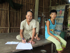 Bà Phạm Thị Tám, mẹ anh Huỳnh Văn Dũng gởi lời cảm ơn nhà hảo tâm đã giúp đỡ. Ảnh: NG.B