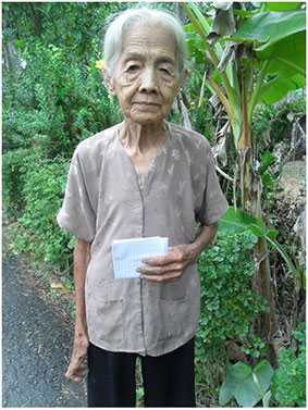 Bà Nguyễn Thị A nhận tiền do bạn đọc gởi tặng.