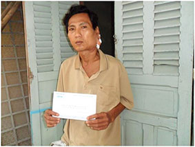 Anh Nguyễn Xuân Trường nhận tiền của bạn đọc