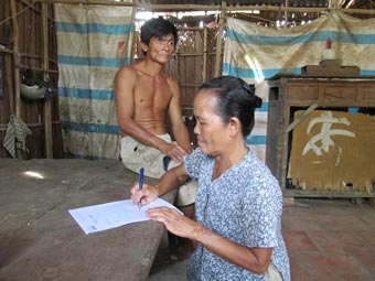 Bà Phạm Thị Tám, mẹ anh Huỳnh Văn Dũng gởi lời cảm ơn nhà hảo tâm đã giúp đỡ. Ảnh: NG.B