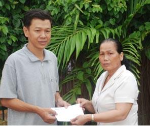 (CT) - Đại điện Báo Cần Thơ vừa kết hợp với Hội Chữ thập đỏ phường Long Tuyền, quận Bình Thủy đến trao 300.000 đồng của chị Hồng Hạnh, Ngân hàng TMCP Công thương Việt Nam Chi nhánh Cần Thơ, giúp đỡ gia đình ông Dương Văn Tiền, ở phường Long Tuyền, quận Bình Thủy (xem bài “Xin giúp anh Tiền duy trì cuộc sống” đăng trên Báo Cần Thơ điện tử ngày 22-9-2011). Hoàn cảnh gia đình ông Tiền rất khó khăn, không ruộng đất sản xuất, hàng ngày vợ anh Tiền phải dậy từ 3 giờ sáng để mua rau, cải ở vườn mang ra chợ bán kiếm lời lo cho 2 đứa con thơ dại và chi phí lọc thận cho anh Tiền (cách 1 ngày, anh Tiền phải lọc thận 1 lần)...