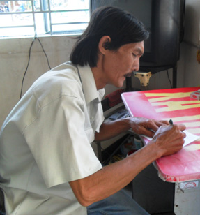 Anh Ngọc ký nhận tiền bạn đọc gởi tặng.