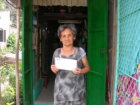 Bà Lang nhận tiền của chị Hồng Hạnh gởi tặng.