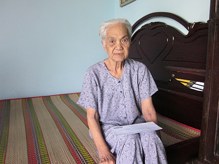 Bà Nhẹ xúc động nhận tiền bạn đọc gởi hỗ trợ.