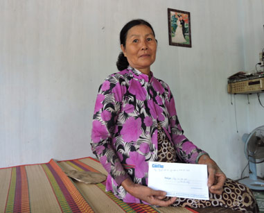 Bà Nguyễn Thị Mau nhận tiền của bạn đọc gởi giúp đỡ.