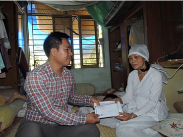 Ông Khỏe trao tiền hỗ trợ cho bà Thắm.