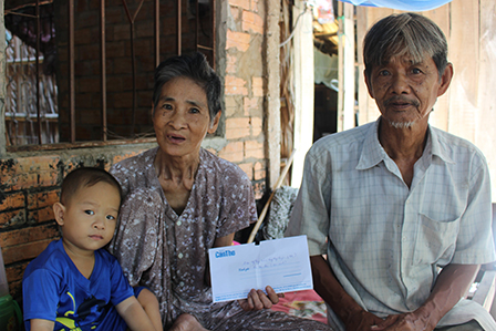 (CT) - Ngày 18-5-2016, phóng viên Báo Cần Thơ trao 300.000 đồng cho vợ chồng cụ ông Hà Văn Be – bà Nguyễn Thị Ba, ở ấp Tân Nhơn, xã Tân Thới, huyện Phong Điền (xem bài: “Hơn 15 năm nuôi vợ bệnh tật” trên Báo Cần Thơ điện tử ngày 1-4-2016). Số tiền do bạn đọc Nguyễn Duy Bảo, ở đường Ngô Quyền, quận Ninh Kiều gởi tặng (ảnh).
