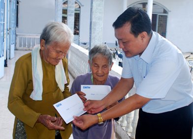 (CT) - Phóng viên Báo Cần Thơ và lãnh đạo UBND xã Trường Long, huyện Phong Điền vừa đến trao 1 triệu đồng của ông Nguyễn Văn Chương, ở TP Hồ Chí Minh, gởi giúp bà Huỳnh Thị Nhựt và bà Huỳnh Thị Ký, cùng ngụ ấp Trường Khương A, xã Trường Long, mỗi bà nhận 500.000 đồng (xem bài “Hai người già cô đơn, vất vả mưu sinh” trên Báo Cần Thơ điện tử ngày 11-4-2009). Hoàn cảnh hai bà rất đáng thương, tuy không phải chị em ruột nhưng cùng cảnh già neo đơn, hằng ngày lụm cụm nhặt từng nhánh củi khô, mót lúa rơi ngoài đồng, đem bán để kiếm tiền sinh sống qua ngày. Chưa kể hai bà còn mắc các bệnh tim mạch, đau khớp… sức khỏe suy yếu dần nhưng không người nuôi dưỡng, chăm sóc.