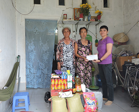 Chị Tuyết Lan đại diện nhóm từ thiện trao quà cho gia đình chị Thảo