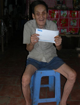 Đại diện Báo Cần Thơ đến trao 500.000 đồng của bà Phạm Thị Kim Chi, ngụ phường Tân Quy, quận Tân Phú, TP Hồ Chí Minh gởi tặng ông Võ Văn Răng, ngụ 463, tổ 33, ấp Mỹ Nhơn, xa Mỹ Khánh, huyện Phong Điền (xem bài: “Ông lão mù lòa đang cần được giúp đỡ!” trên Báo Cần Thơ điện tử ngày 5-10-2009).