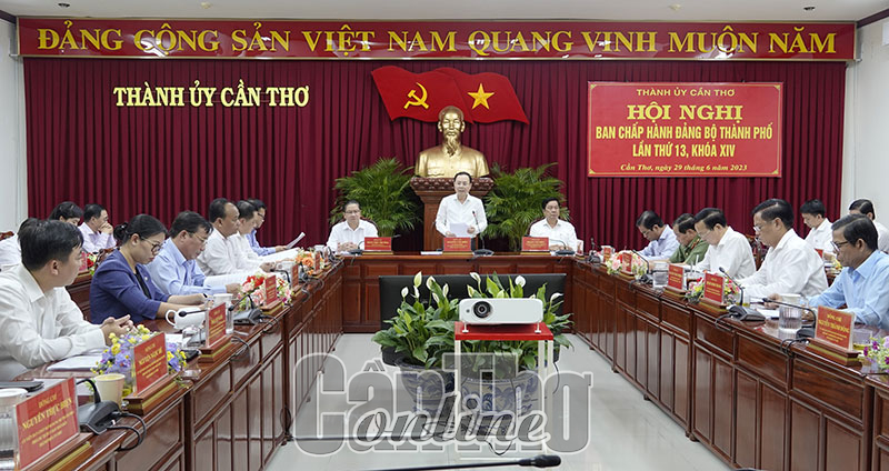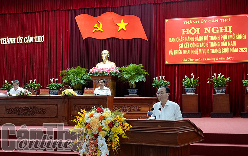 (CT) - Sáng 29-6-2023, Thành ủy Cần Thơ tổ chức hội nghị Ban Chấp hành Đảng bộ thành phố (mở rộng) sơ kết công tác 6 tháng đầu năm và triển khai nhiệm vụ công tác 6 tháng cuối năm 2023. Đồng chí Nguyễn Văn Hiếu, Ủy viên dự khuyết Ban Chấp hành Trung ương Đảng, Bí thư Thành ủy; đồng chí Phạm Văn Hiểu, Phó Bí thư Thường trực Thành ủy, Chủ tịch HĐND thành phố và đồng chí Trần Việt Trường, Phó Bí thư Thành ủy, Chủ tịch UBND thành phố, đồng chủ trì hội nghị.