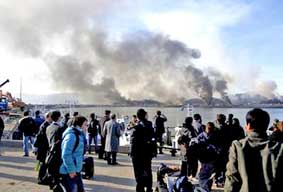 Người dân Hàn Quốc có thể thấy rõ vụ xung đột đẫm máu trên đảo Yeonpyeong. Ảnh: AP |