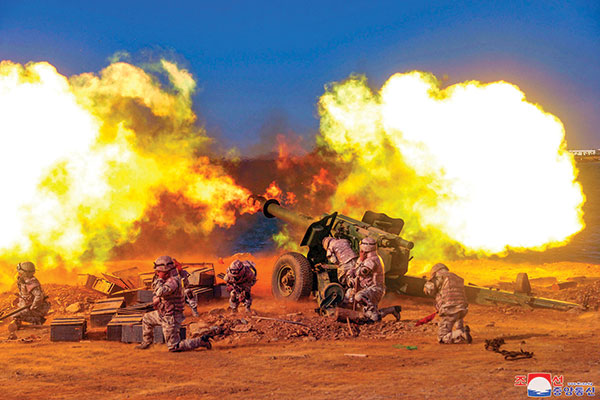 Binh sĩ Triều Tiên trong một cuộc diễn tập bắn pháo. Ảnh: Yonhap