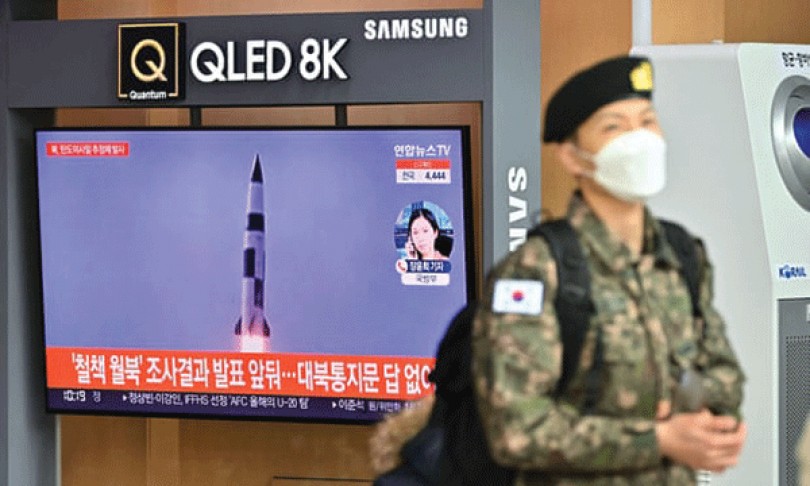 Truyền thông Hàn Quốc đưa tin vụ phóng tên lửa của Triều Tiên. Ảnh: Getty Images