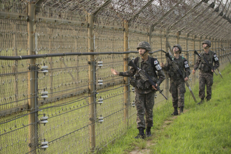 Binh sĩ Hàn Quốc tuần tra tại khu vực biên giới với Triều Tiên.