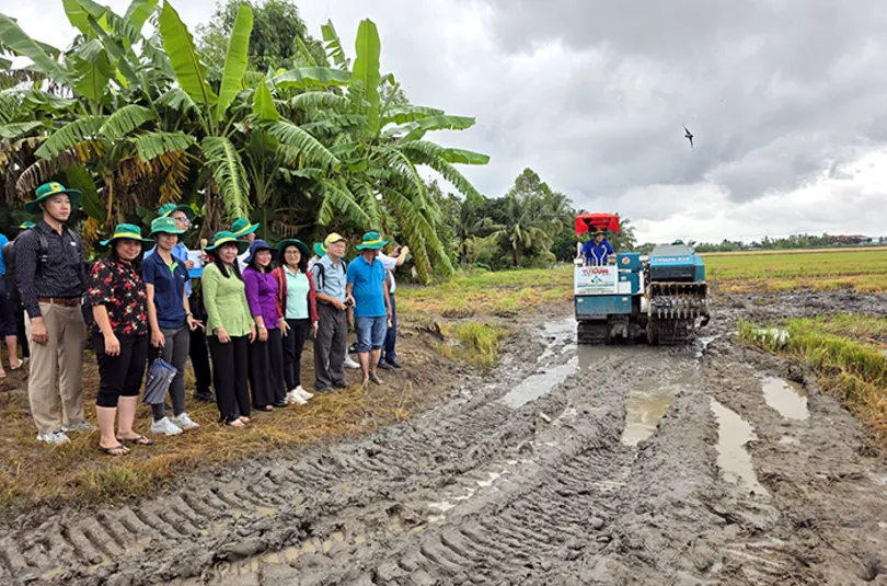 Trình diễn cơ giới hóa vùi rơm kết hợp áp dụng chế phẩm sinh học tăng sức khỏe đất