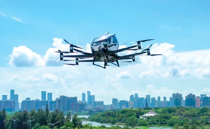 Mới đây, người ta nhìn thấy một taxi bay không người lái hình bầu dục của nhà sản xuất Ehang lơ lửng, kêu vù vù như trực thăng mini ở khu vực ngoại ô khu trung tâm thương mại Quảng Châu, miền Nam Trung Quốc. Đây là một phần trong thử nghiệm taxi bay mà trước đây có lẽ chỉ xuất hiện trong phim khoa học viễn tưởng.