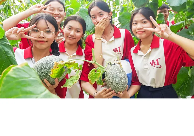 Học sinh đến tham quan, trải nghiệm tại vườn dưa lưới Tân Hiệp Farm. Ảnh: cơ sở cung cấp