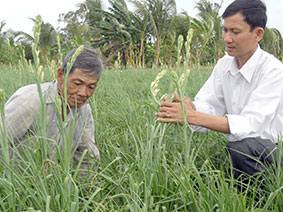 Chú Bảy (bên trái) đang chăm sóc