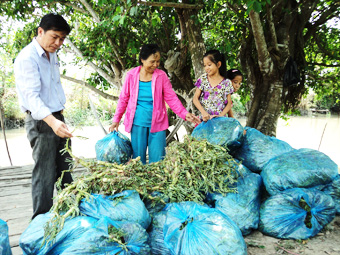 Bà con thu hoạch rau nhút chuẩn bị giao cho thương lái. |