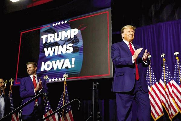 Cựu Tổng thống Trump giành chiến thắng vang dội ở Iowa. Ảnh: Reuters