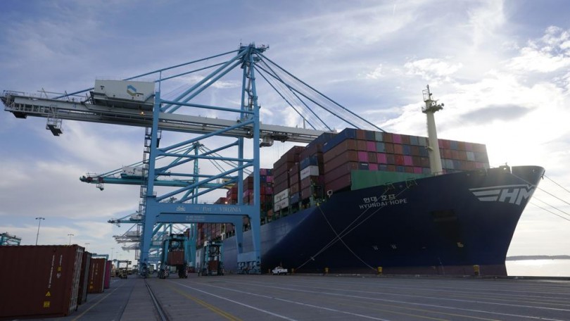 Hàng hóa nhập khẩu đang chờ bốc dỡ tại cảng biển Mỹ. Ảnh: AP