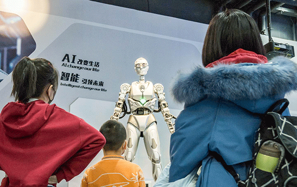 Trẻ em tương tác với một robot AI tại Bảo tàng Khoa học và Công nghệ Trung Quốc. Ảnh: Getty Images
