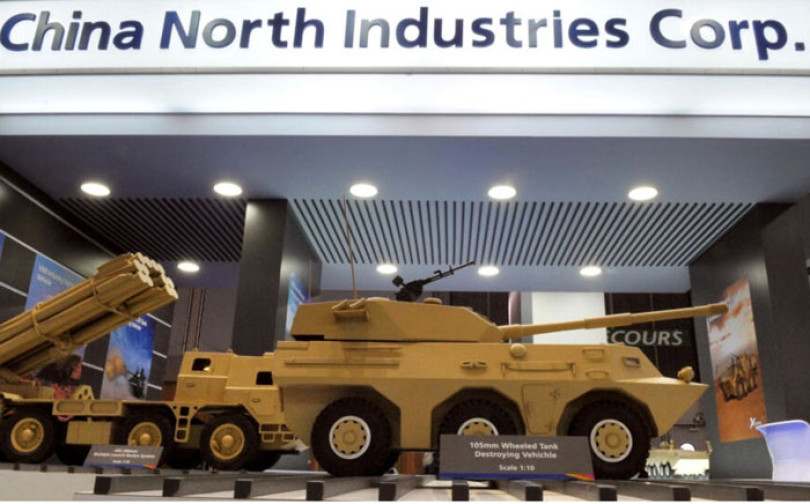 Gian hàng trưng bày vũ khí của Norinco tại Triển lãm vũ khí lục quân Eurosatory (Pháp) hồi tháng 6-2023. Ảnh: AFP