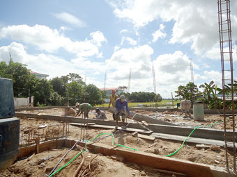 Công nhân khẩn trương hoàn thành công trình hội trường nhà văn hóa xã theo kế hoạch. |