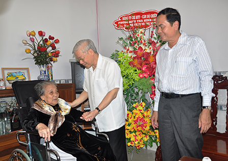 Tổng Bí thư Nguyễn Phú Trọng thăm và tặng quà Mẹ Việt Nam Anh hùng Võ Thị Nhung, ở phường An Thới (quận Bình Thủy).