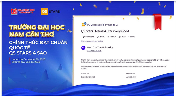 Trường Đại học Nam Cần Thơ đạt chuẩn QS Stars 4 sao