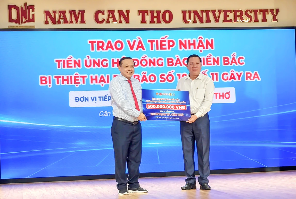 Trường Đại học Nam Cần Thơ trao 500 triệu đồng ủng hộ đồng bào miền Bắc bị thiệt hại do bão số 10 và số 11