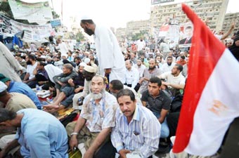 Những người ủng hộ ông Morsi biểu tình ngồi tại Thủ đô Cairo. Ảnh: AFP |