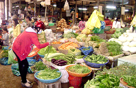 Nhiều ý kiến cho rằng việc sớm ban hành các tiêu chuẩn chất lượng bắt buộc cho các loại rau củ quả và hàng nông sản nói chung được buôn bán tại các siêu thị và chợ là rất cấp thiết. Trong ảnh: Mua bán rau củ tại Trung tâm Thương mại Cái Khế, TP Cần Thơ.