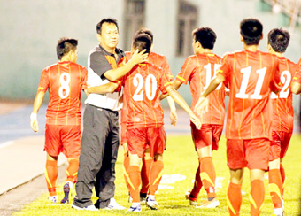HLV Hoàng Văn Phúc và các học trò U-23. Ảnh: S.H