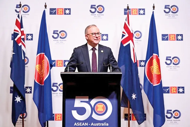 Theo phóng viên TTXVN đưa tin từ Melbourne, phát biểu tại phiên họp toàn thể của lãnh đạo các nước thuộc Hiệp hội các quốc gia Đông Nam Á (ASEAN) và Úc, Thủ tướng Úc Anthony Albanese (ảnh) khẳng định Hội nghị Cấp cao Đặc biệt kỷ niệm 50 năm quan hệ ASEAN - Úc là cơ hội để Úc và ASEAN chúc mừng những thành công chung, khẳng định niềm tin về vai trò trung tâm của ASEAN đối với sự thịnh vượng và an ninh của khu vực, cũng như để thể hiện rõ tầm nhìn chung của cả hai bên trong 50 năm hợp tác tiếp theo.