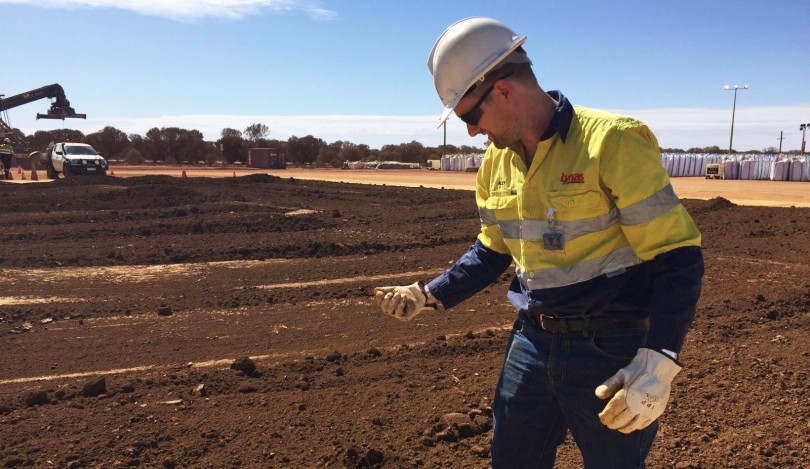 Một công nhân xử lý đất hiếm tại vùng Mount Weld, Tây Úc. Ảnh: Reuters