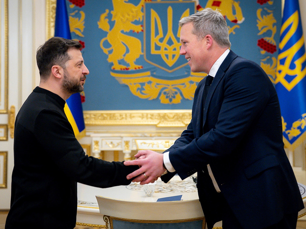 Tổng thống Zelensky (trái) tiếp đón Bộ trưởng Lục quân Mỹ Driscoll tại Kiev hôm 20-11. Ảnh: Reuters