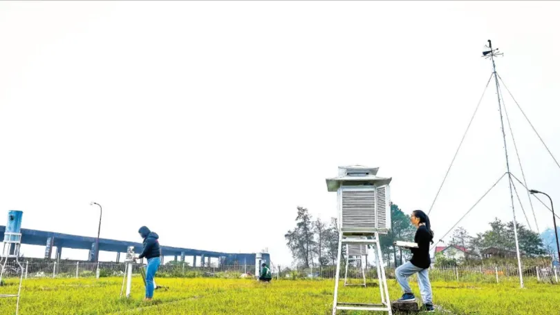 Nhân viên lấy dữ liệu tại Trạm Khí tượng thủy văn Sa Pa, tỉnh Lào Cai. (Ảnh TRỌNG TÙNG)
