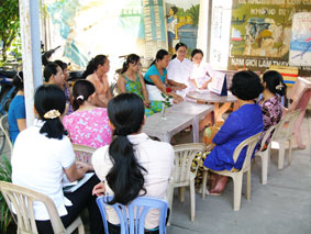 Cán bộ Trạm Y tế phường Thới Long, quận Ô Môn tuyên truyền cho chị em phụ nữ tầm soát và phát hiện sớm ung thư cổ tử cung bằng kỹ thuật VIA. |
